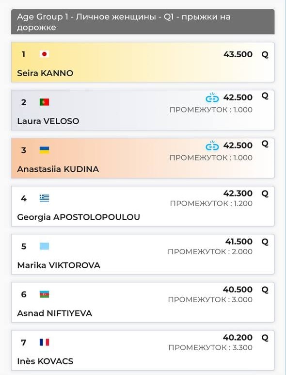 1 юнацький розряд, дівчата: перше місце – Шаповалова Вероніка, друге – Ломейко Поліна, третє – Крупенко Мар’яна.