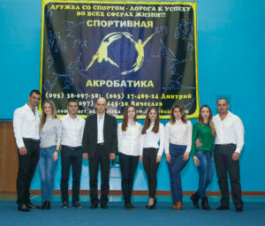 На акробатической дорожке выступали КМС и МС по акробатике. Среди них были два наших тренера: Рачек Сергей и Проскурина Диана. Также показывали свое мастерство представители Днепродзержинской и Генической школ акробатики и Днепропетровской школы гимнастики. Все ребята неоднократные призеры и победители соревнований различного уровня.